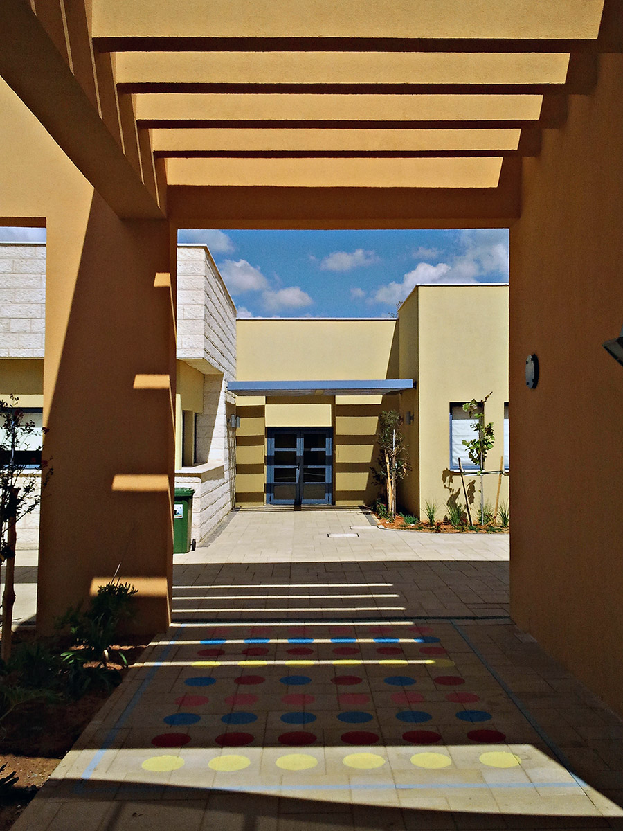 Description: The 18 classroom elementary school is comprised of 3 single-story classroom buildings aligned along a sun-protected walkway and facing a row of art workshops and science laboratories accessible to all school classes.  Each classroom building houses two grade levels in 6 classrooms that surround a common open activity space.  The administration building includes a spacious entrance lobby that serves as a gallery for educational exhibits and leads to the school library.  The library is designed for combined community use in after school hours.