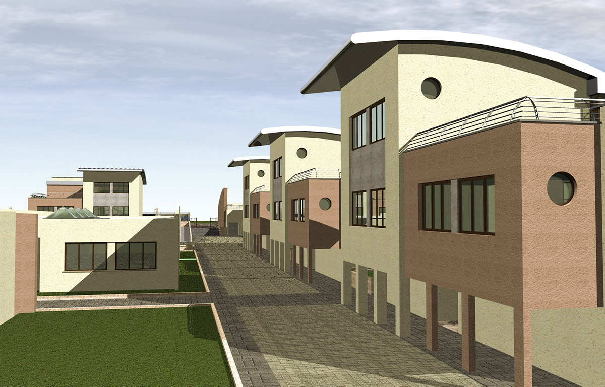 A competition entry for an ecological high school, the plan optimizes natural lighting, ventilation and shading, and is based on energy-conserving building materials. A unique component of the design is the planted roof covering for several of the school buildings. The green roofs were planned to be visible from all school buildings, and they complement the natural scenery of the Alexander River area in which the site is located. The roof gardens are designed to create changing scenery with the seasons.