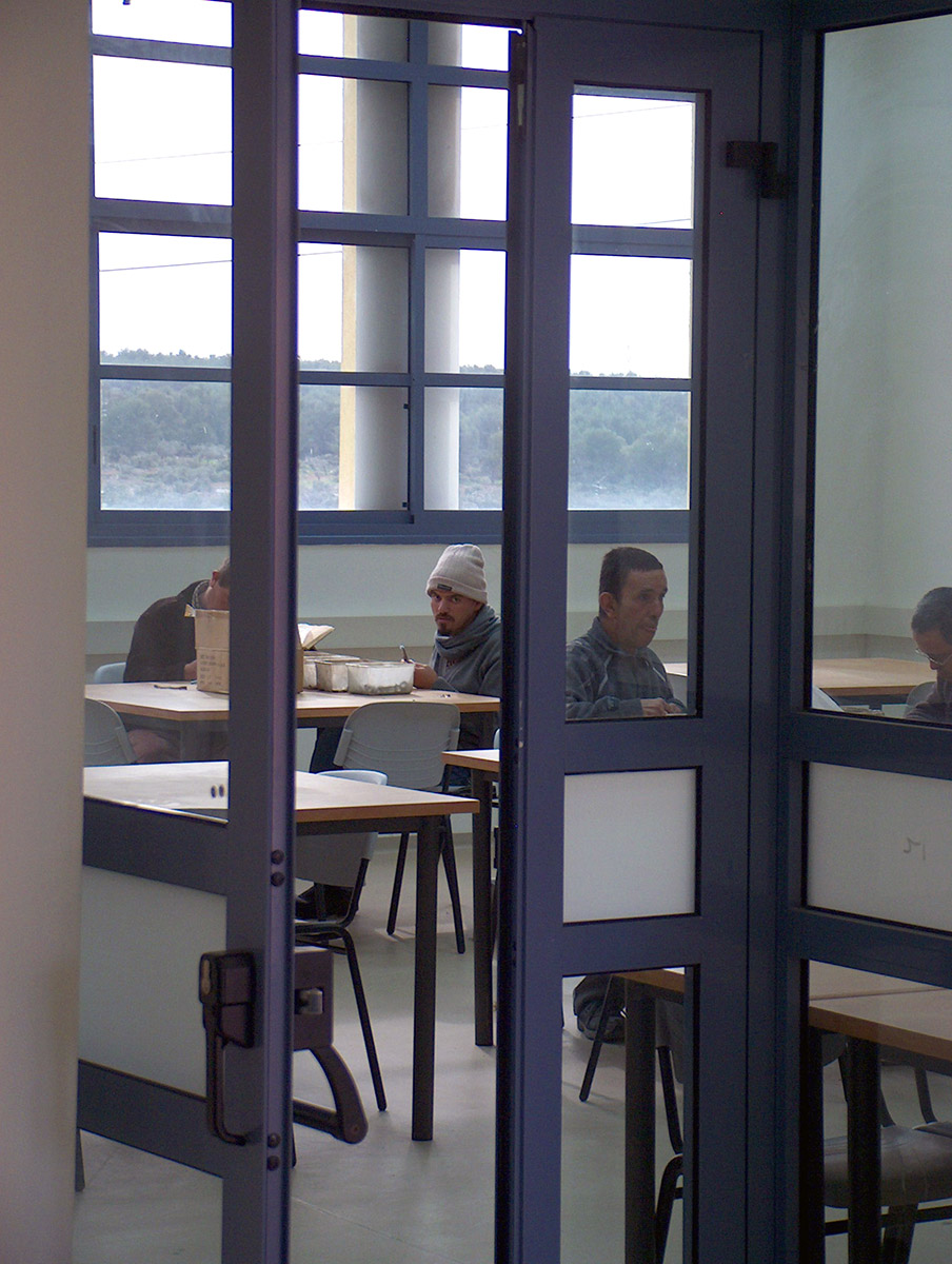 The center provides occupational training for about 50 trainees from the Arab community in the Western Galilee. The building is located on a hilltop overlooking scenic olive groves. The entrance to the single-story building leads to a central lobby with a skylight, with the dining room and kitchen on one side, and the offices and training areas on the other. The southern section of the building faces the view, and contains three glass-paned production rooms. The partitions between the rooms are also glass paned, allowing for eye contact between staff and trainees.