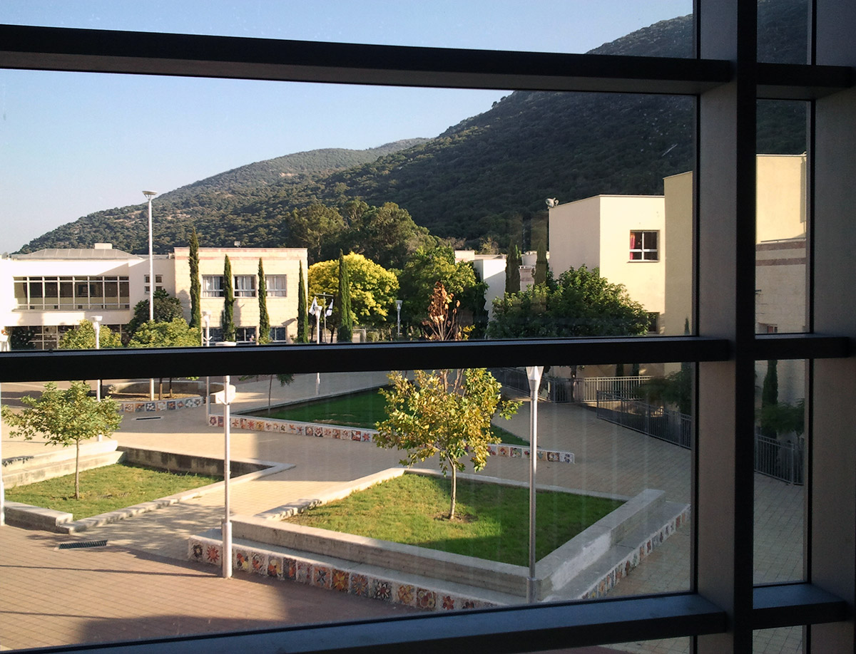The buildings, set against the natural landscape of Mount Carmel, are surrounded by spacious gardened landscaping and are arrayed around a large park-like square that forms a natural gathering area.